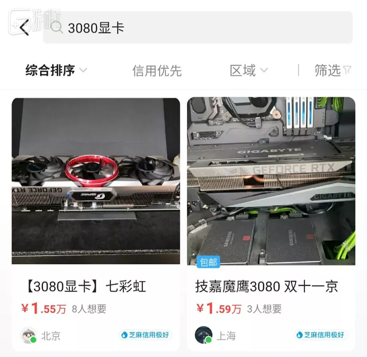 旧显卡都这行情,新卡就更离谱了。像是3070 的市场指导价3899,而现货已经卖到1.1-1.2万,3080的现货卖到1.5-1.6万,连1660 Super这种甜品卡都冲到了将近5000。