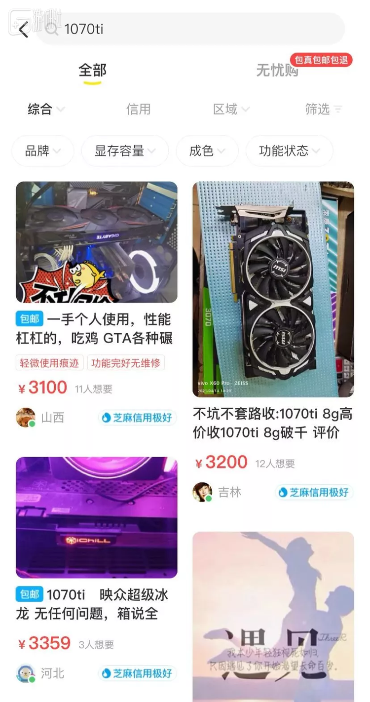 由于1070Ti性能也不是那么落伍,我就暂时把卡收了起来,打算回头组个二号机玩玩。前两天我们的画师聊到最近显卡价格有多离谱,让我打了个激灵。上网搜了搜,果断就把手上的显卡挂上了交易平台。