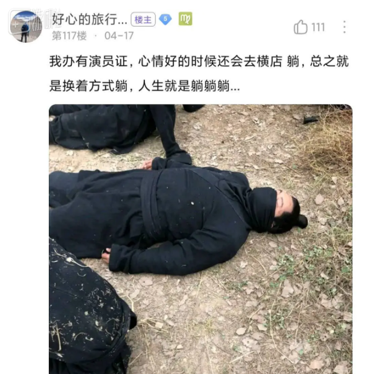 最可贵的是,即使在生活中,他也身体力行遵循自己的躺平原则。为了在每年的两个工作月中践行躺学,他办了一张演员证,只要有需要,就去横店进行物理躺平,既能赚得生活费,又能将躺学贯彻到底。
