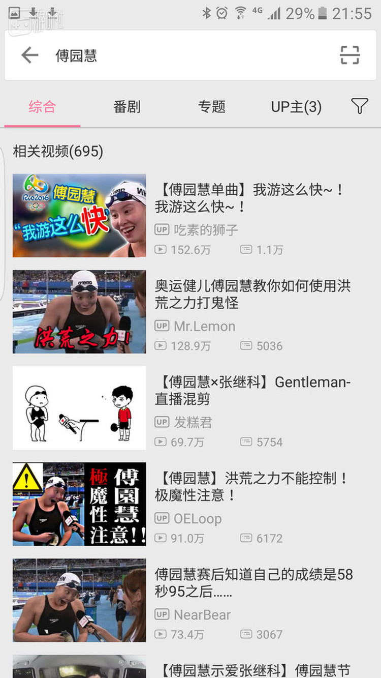 傅园慧在奥运赛场的表现被谙熟ACG的UP主们做成了不同版本的“鬼畜”视频,短时间内获得了极高的播放量