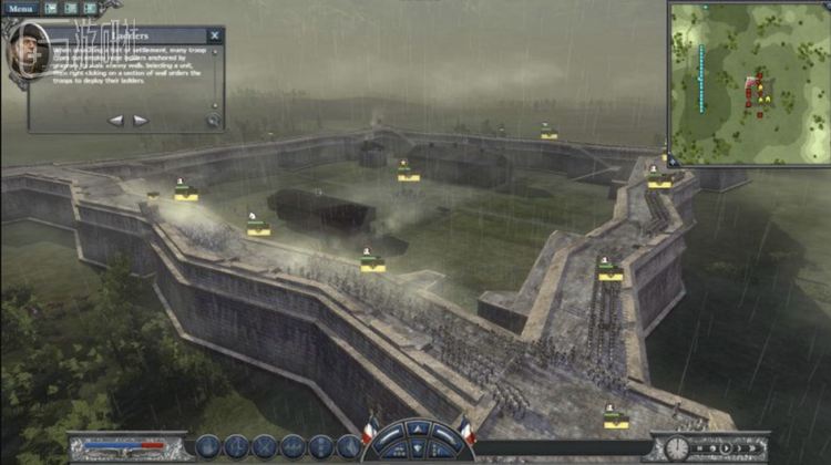在游戏中,棱堡只是比一般城墙更矮,更厚,有几个凸出去的城垛,没有任何类似“火炮抗性+20”的数值加成。但是玩家只要着手防御,就会发现,由于城墙低矮,火炮经常从墙头掠过,无法对城墙上的守军造成威胁;而放置于凸出部上的火炮可以进行侧面射击,火力覆盖到本来安全的城墙下方,让云梯这类基于登城的攻城武器完全失去了意义——下面这张图就很好地展示了棱堡的防护效果。