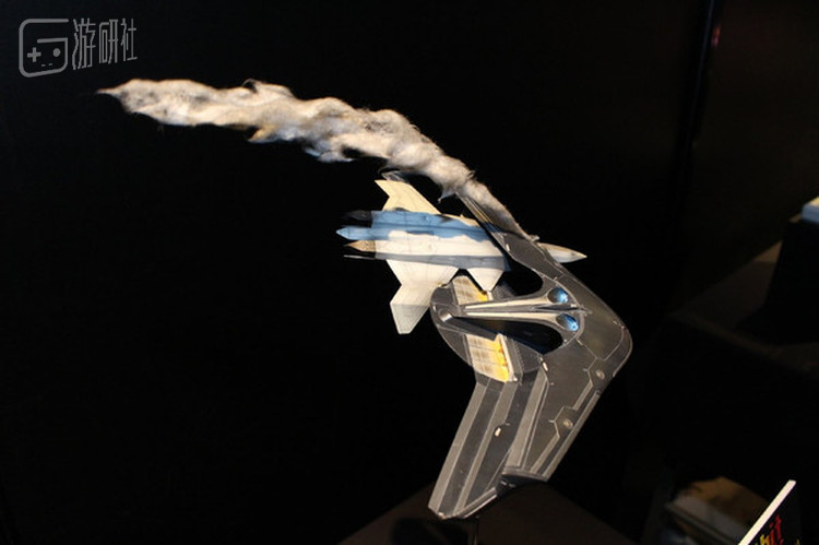 这款作品来自NAMCO于1999年推出的《皇牌空战3》,模型再现了游戏中著名的一幕:X-49夜鸦冲向XFA-36A,并最终穿透其机翼,整体上看来颇有一些冷战著名事件“巴伦支海手术刀”的意味。那一缕从机体中喷出的烟雾在现场空调吹出的冷风的推动下轻微摇摆,这让作品整体的临场感非常强烈。