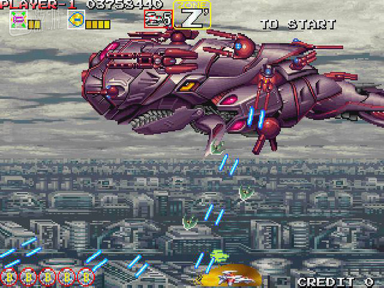 本作来自Tecno Soft出品的著名射击系列游戏《雷霆战机V》,作品用五机编队的形式再现了土星版开场动画的一幕,底下的蓝色背板想来是参考了第一关的海洋背景吧。