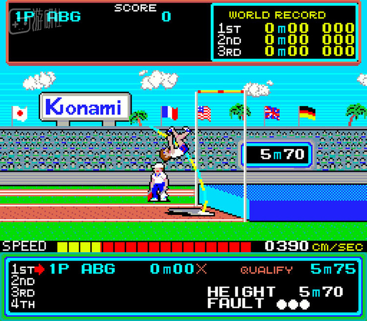 1983年的时候,科乐美在街机上做了一个全新的体育运动游戏,名叫《超级奥运》,日语发音就是“害怕奥林匹克”。在当年充斥着打打杀杀和宇宙飞船的街机房中,突然冒出这么个现实题材的街机游戏(当然标枪扔太高也是会有宇宙飞船的),而且还是以小游戏合集的面貌出现在人们面前,想想也算是非主流了。
