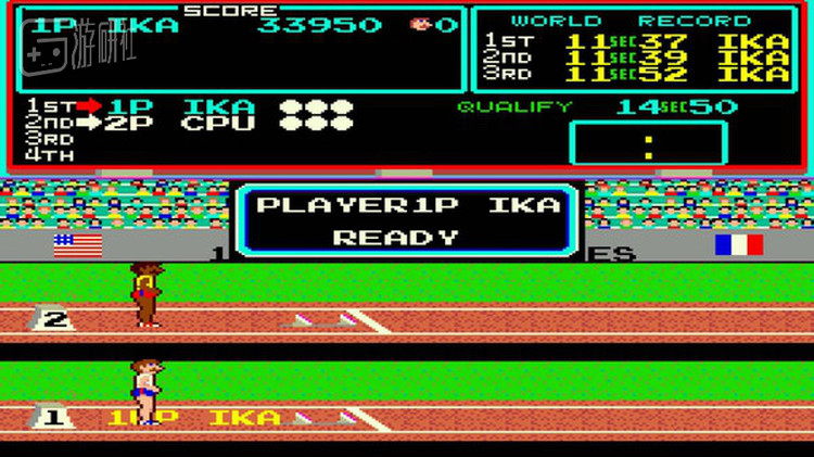 可以发现,这六个项目全都是田径比赛,这就是第一处文不对题的地方。这游戏干脆别叫《超级奥运》了,直接叫《田径》不就好了吗?且慢,“田径”这名字后来还会用到。