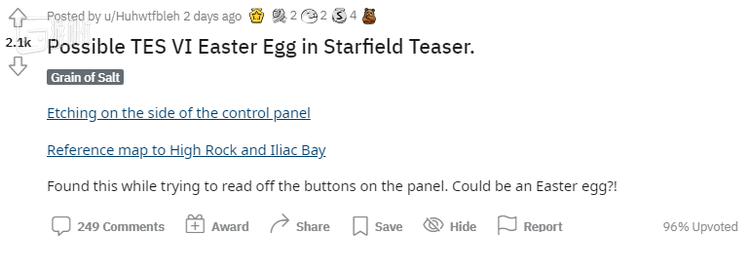 其中就包括上面那位忠实的老滚“计数哥”,他在昨天的日记中写道:《星空》的预告片似乎预告了《上古卷轴6》的发生地点,希望这是真的。