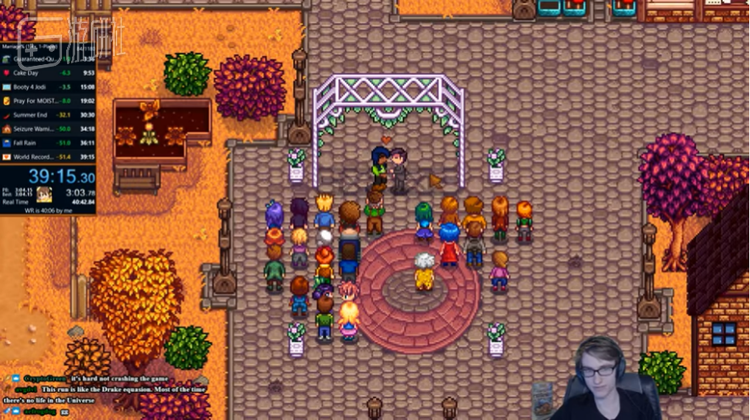 5月27日,一名叫TheHaboo的玩家创下了“单人游戏不使用漏洞最快结婚”项目的世界纪录,他在星露谷第一年的秋季便成功结婚,现实中耗费的时间仅为40分42秒,堪称名副其实的“闪婚”。