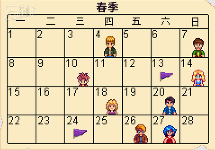 星露谷的一年分为春夏秋冬四个季度,一个季度长达四周28天。在不看攻略的前提下,一般玩家与NPC走进婚姻殿堂的时候,可能已经在星露谷呆上了三年五载,即现实世界中的数十乃至上百个小时。