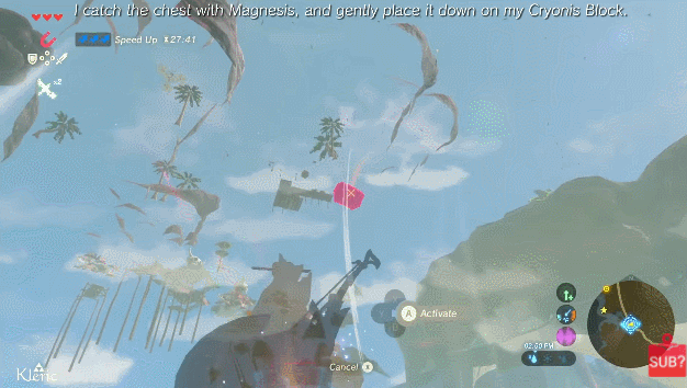 Kleric先在距离宝箱最近的位置放下了一个传送点,以便快速返回,随后利用月步(旷野之息中类似左脚踩右脚的无限升天Bug)缓慢靠近宝箱辐射范围内。Kleric给自己装备上了宝箱警示器,一旦附近有宝箱出现,警报就会立刻响起,就像百米赛跑的发令枪,指示他用尽所有耐力猛地向宝箱所在位置冲过去。