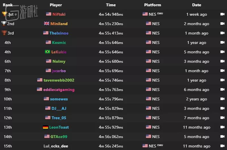 今年4月,初代《超级马力欧兄弟》的速通纪录成功被玩家Niftski刷新到了4分54秒,而这一纪录仅仅比第二名快了四分之一秒。