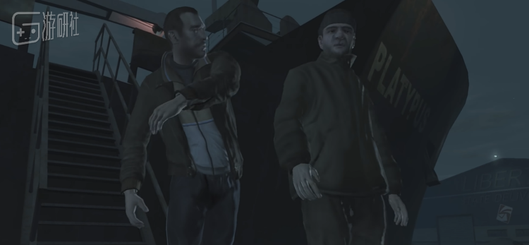 GTA4开场剧情,尼克(左)乘船从东欧抵达美国