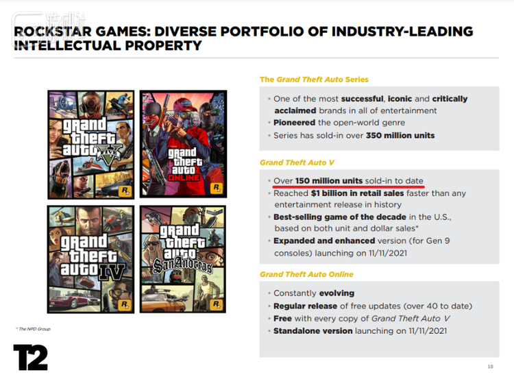 GTA5已经卖出了超过1.5亿份,图源Take-Two今年8月的财报