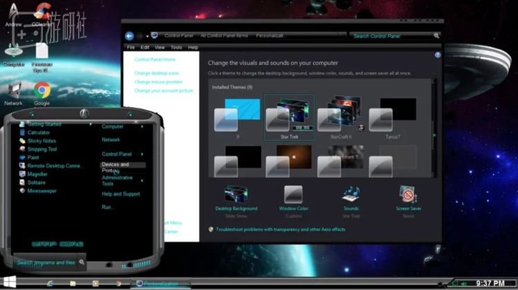 预设的系统主题里,还有《星际迷航》和《星际争霸》这两个作品的主题。