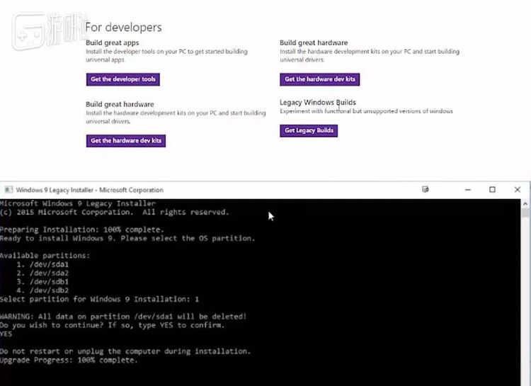 他在视频的开头简述了Windows 9的传说,然后马上开始了手把手演示,看起来试图教会观众下载这个他意外发现的Win9系统。按照他的指引,我们只需要登录微软官网的开发者界面,就能在 “Windows版本遗产”一栏中,找到被弃用的Windows 9版本。