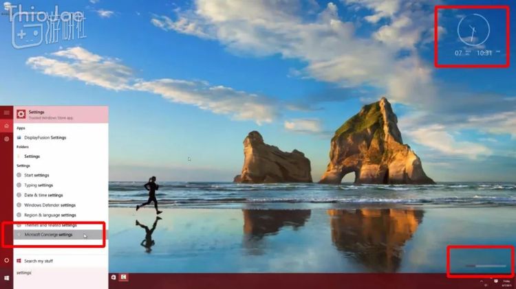 安装过程在他的演示中一切正常,版本号和系统名都属于Windows 9,也没有前面山寨版中奇奇怪怪的界面。安装完成后桌面和Windows 10很像,除了版本号和系统名外,只有几个被Win10弃用的小组件,和疑似微软助手小娜的前身“微软看门人(Microsoft concierge)”可以证明它的身份。