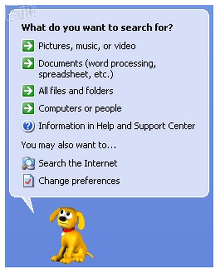 而这只小黄狗,之后也作为一个小彩蛋被添加到了Windows XP系统的搜索界面中: