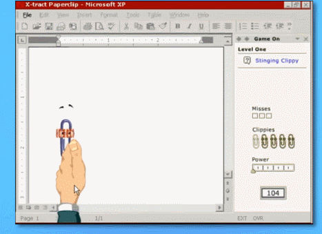 但显然在XP系统正式发售之前,官方还需要这位小助手的“帮忙”。在为XP系统造势的宣传里,Clippy哪里需要就往哪里搬,针对用户们厌恶Clippy的高涨情绪,官方先是推出了对Clippy瞄准射击的Flash游戏来表明自己的态度——XP里你看不见这个讨厌的玩意儿啦!