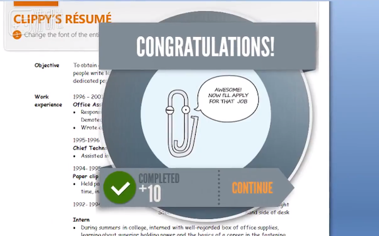 如何让这位老年网红下岗再就业,成为了无数粉丝想要解决的问题。得知用户有这样的需求,微软官方也时不时会让大家尝点甜头。2011年4月,微软推出了一款游戏叫做《丝带英雄2:Clippy的第二次机会》,这是一款教用户如何使用Office中的Word、Excel等软件教育游戏,Clippy就在其中担任新手教程的指导老师。