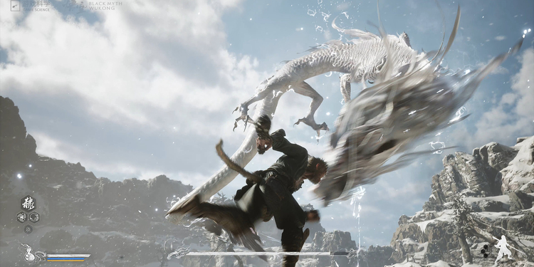 演示中的一些动作虽然仍待修饰,但诸如受击动画等细节,相较去年都更为丰富。玩家还能看到大猴子跪地“诈降”、亢金龙在天上放出轰雷砸破冰面的场景,不管是从战斗视觉效果还是与敌人的动作交互上,都呈现出了一些新内容。