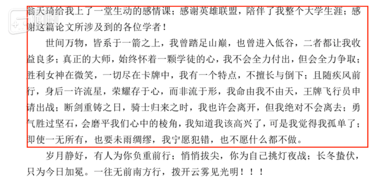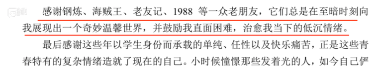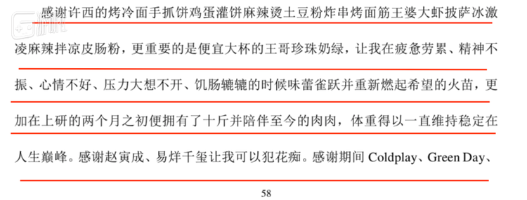 无论是麻辣香锅还是烧烤,学生们开始在致谢里感谢任何给自己带来治愈感的事物。
