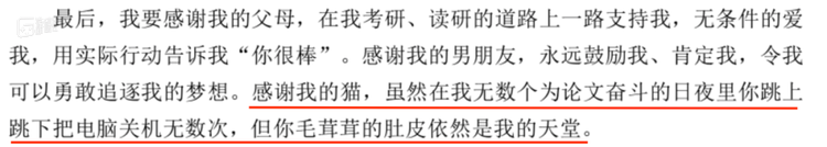在论文致谢这个最具人文关怀的部分,我们能看见他们的身影。
