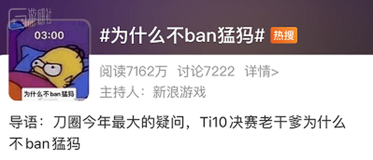 经过一夜的发酵,“为什么不ban猛犸”在第二天上午就登上了微博热搜,浏览数超过7000万。这样的热度显然超出了原本的DOTA圈子,无数局外人在询问猛犸究竟是什么梗。