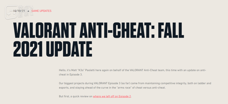 Valorant反作弊团队代表Matt“K3o”Paoletti在更新声明中声称,反作弊与作弊是一场“军备竞赛”,他们的工作就是尽可能的在这场竞赛中保持领先,进而保证玩家的游戏环境。