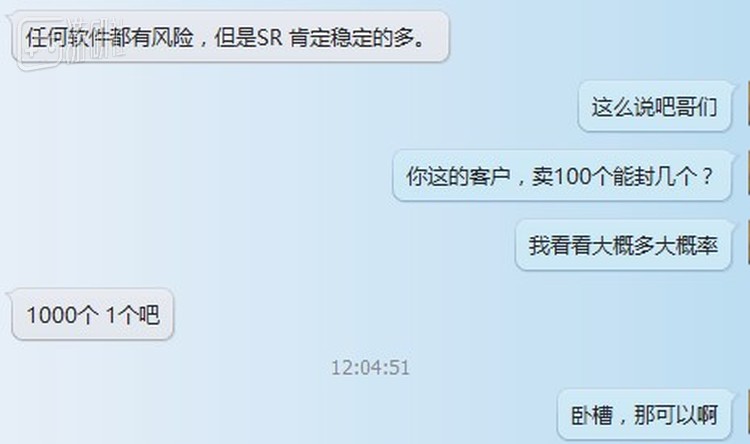 笔者随意点开了一个标价500元的SR外挂,以购买者的身份加入了其产品说明中提到的“交流群”和老板交流。这位名为“守望先锋”的老板声称现在市面上的主流产品中,自己的SR外挂最稳定,带有自瞄和透视功能。所谓的“稳定”一是指自瞄锁定稳定,不乱晃;二是指外挂不容易被封。在笔者跟卖家询问有多大几率会被封号时,买家给出的数字是“1000个(里有)1个吧”。