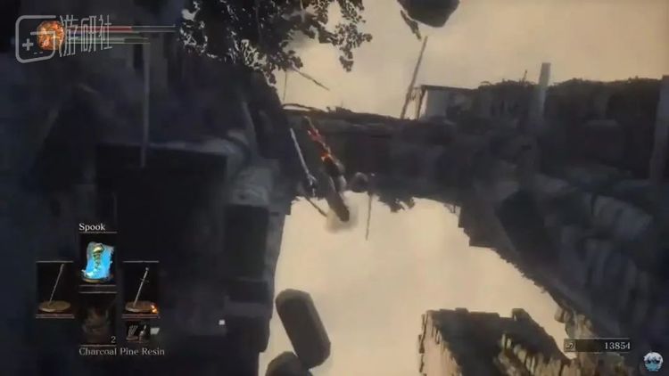 在游戏流程初期的教程环节,有一个镜头拉近的动画教玩家怎么用弹反应对怪物的攻击。如果在第一次进入动画后退出游戏,然后从其他道路来到这个房间、杀死这个怪物,那么再次进入这段动画时,视角就会卡在这里不动。于是名为“法兰邪道”的速通技巧就被触发了。