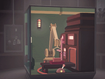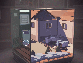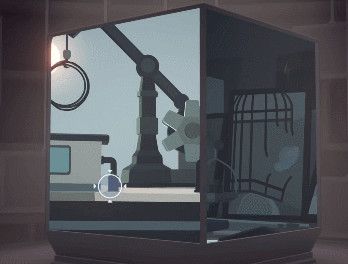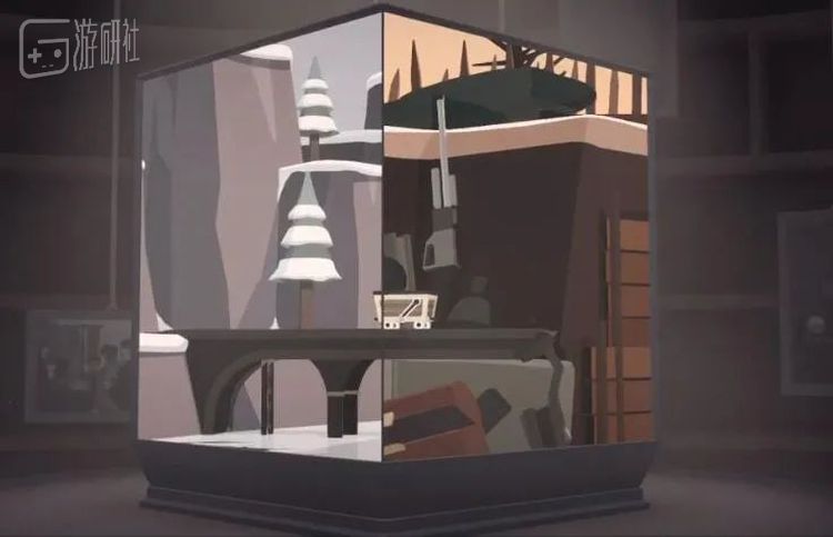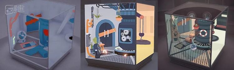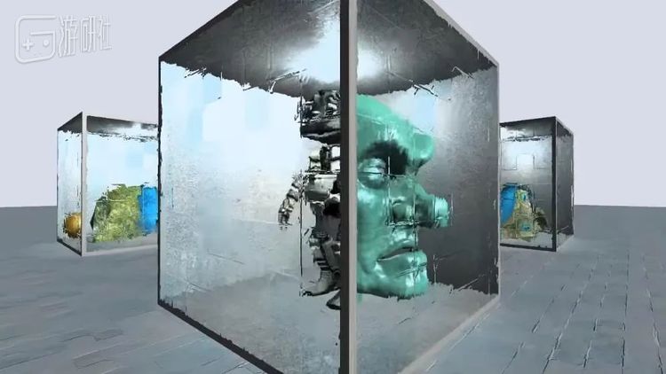 《笼中窥梦》的创意原点,受到了一个U3D技术演示视频的启发。视频中展示了一种名为Stencil Buffer的着色器缓存遮罩技术,同时渲染多个物件,却只在一个视角展示它们。所以这段动画的立方体展柜里,每一面都展示着截然不同的世界。周栋当时觉得这个东西很有趣,技术上也不难实现,就决定以此做一个游戏。