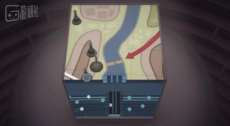 或者反过来,当沙盘世界的进程无法推进时,现实世界也能影响沙盘的战局。例如当一股兵力无法渡河时,就需要我们去现实世界解谜推进,而这就是前面提到的“小车渡河”谜题。仅靠完成解谜,我们就能很快明白它背后的故事,战线在推进,战争在蔓延。