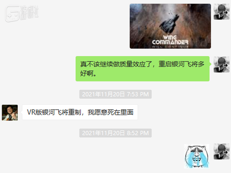 我把它发给《银河飞将》在大陆最大的遗老严锋老师看,得到的回复动人心魄:“银河飞将用VR重制,我愿意死在里面。”