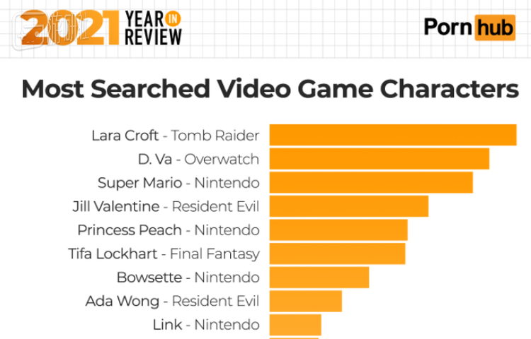 而更细化的游戏人物榜单则并没有太大变化,像《古墓丽影》的劳拉、《守望先锋》的D.Va、《最终幻想》的蒂法依旧登上了榜单的前十。在19年屈居亚军的劳拉终于在今年登上榜首,颇有点“冠军轮流坐”的意思。