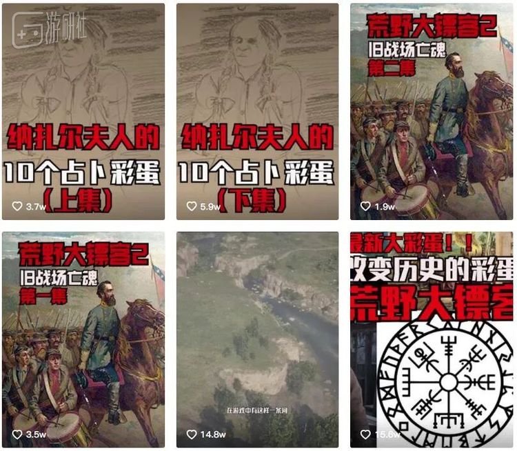 梵高的视频会挖掘《荒野大镖客2》里的剧情彩蛋,将故事的前因后果和背景故事梳理后告诉观众,内容相对硬核。但平均几十上百万的播放量,也证明了在抖音这样的短视频平台上,的确有不少观众喜欢看他的视频。