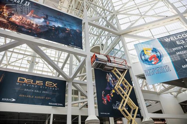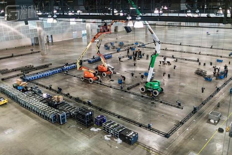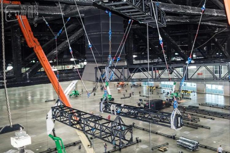 主会场是E3的主要区域,面积很大。厂商展示、游戏试玩还有一些节目表演都在这里。搭建过程也是一派繁荣景象,他们在做什么呢?