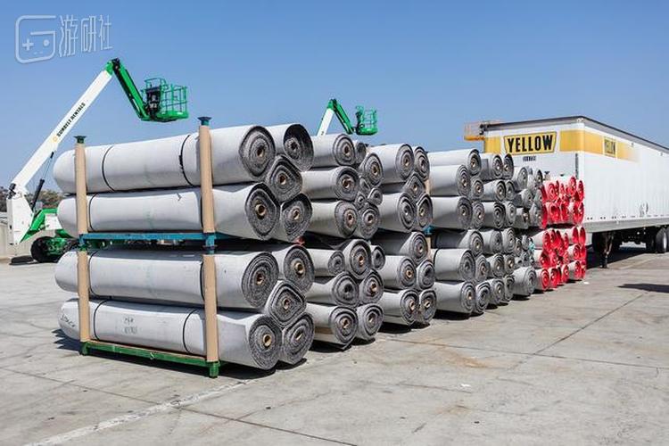 其实他们运的是使命召唤的横幅海报,长40米,即将挂在图片左边的架子上。作为会场正前方的重要宣传位,海报一定要足够大才能让人在很远的地方就看得清。也真是辛苦他们了。