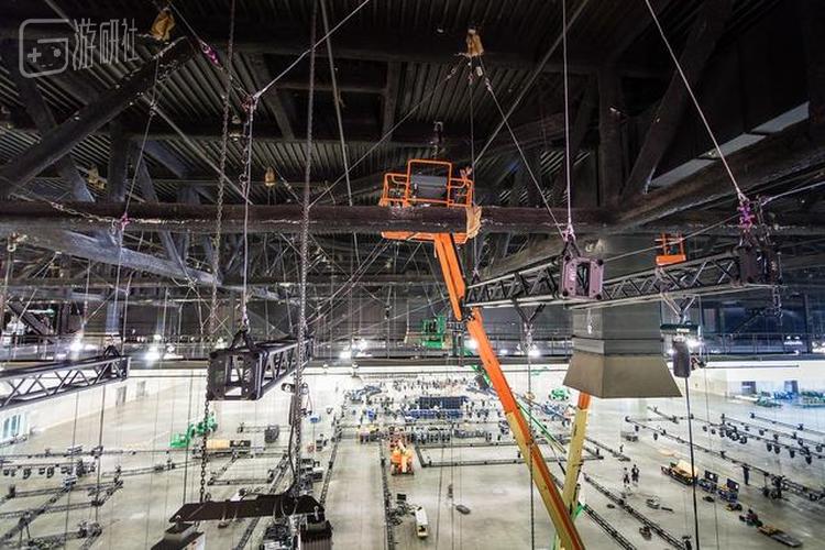 准备好支撑架和吊索后,要依靠吊具把支撑架吊起来。主办方总共动用了1400个吊具,总拉力达900吨!