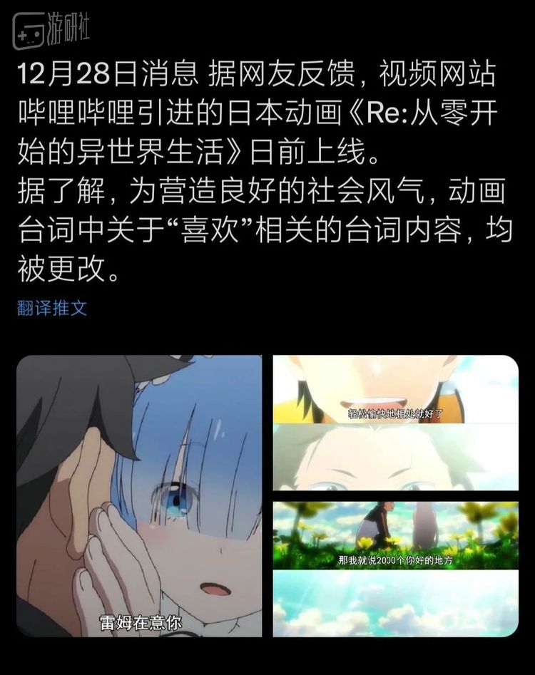 甚至连“喜欢”这种直观的情感表达也可能导致问题,在《RE:从零开始的异世界生活》被点名批评过后,所有的直球告白都被替换成了微妙的情感表达。