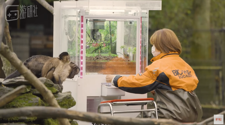 上个月,一台经过改造的中等型号抓娃娃机被摆放在了长崎动物园的棕帽卷尾猴园区,机器内装的不是玩具娃娃,而是一堆卷尾猴们最喜欢吃的葡萄干,而机器的启动方式也变成了按键启动,取消了抓娃娃机需要投币的传统。