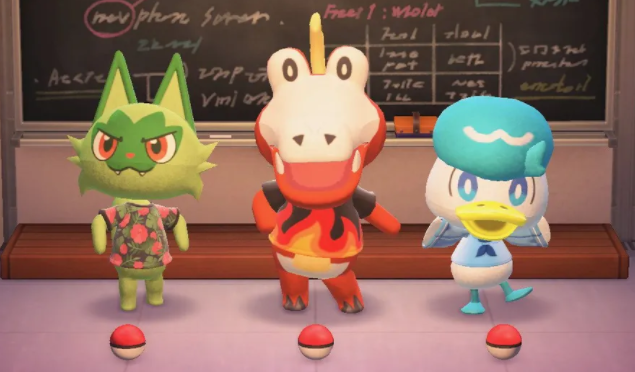 视频中可以看到,Mod作者以动森中村民的人物模型为基础,通过修改配色图案和模型细节,重现了宝可梦新作中的御三家。