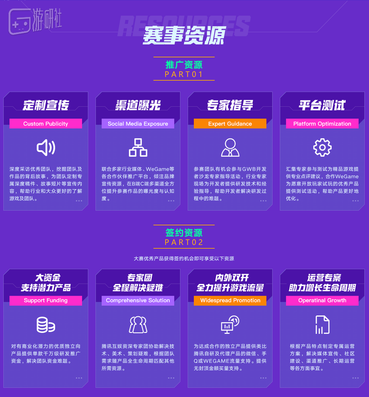 赛事组委会将对优秀的参赛作品持续报道,了解研发背后的故事,帮助其提升玩家认知与行业曝光。并联动腾讯游戏、腾讯游戏学堂、Wegame、微博等合作伙伴,通过打造有趣的玩家运营活动,帮助好游戏走向台前,与用户连接。