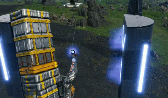 总而言之,“送货”这件事看起来已经变得不再是什么难题了。甚至连悬浮机,就是玩家需要牵着绳子才能一起走的低配版送货机器人,都已经进化成可以跟着一起上滑索,不用再完成“先把它背着的东西卸到自己背上,再把机器人机器收到自己身上,再上滑索”的复杂操作了。