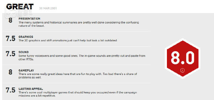 它在2001年3月被全球知名游戏杂志《PC Gamer》颁发“杰出游戏奖”;