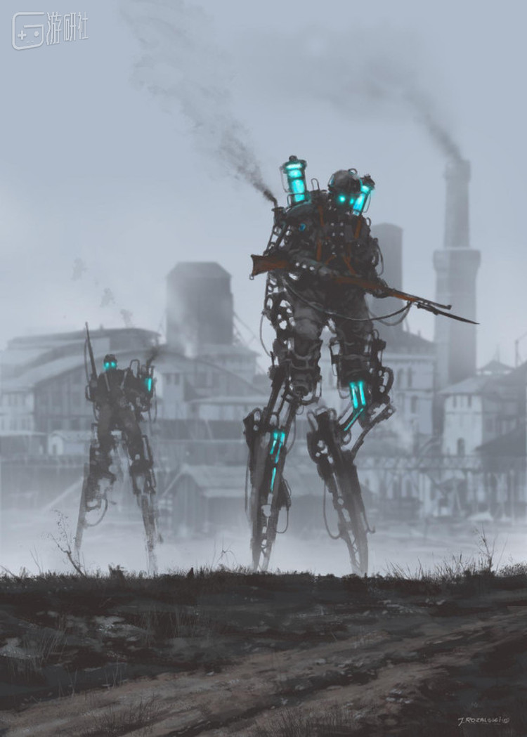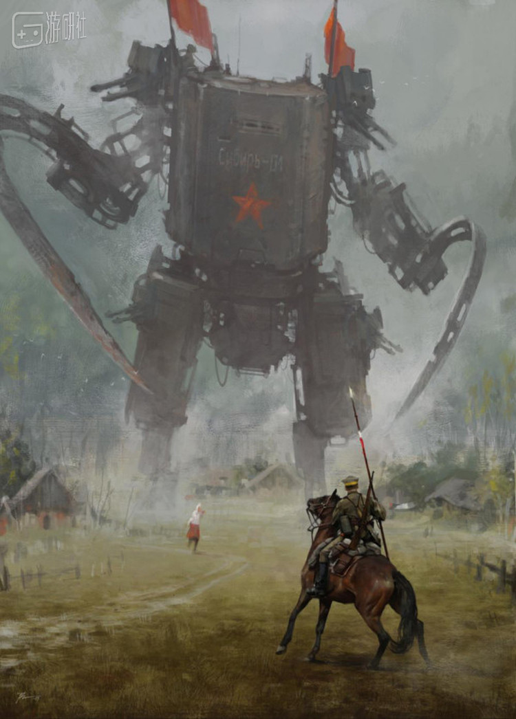 怎么样,这是不是玩家梦想中的游戏形态!所以当这些艺术图刚一放出时,就有人猜测它与今年的战地新作有关。可惜还没等玩家的热情被炒起来,作者Rozalski就明确表示其作品与战地并无瓜葛,而是一部融入了RPG要素的即时战略游戏。