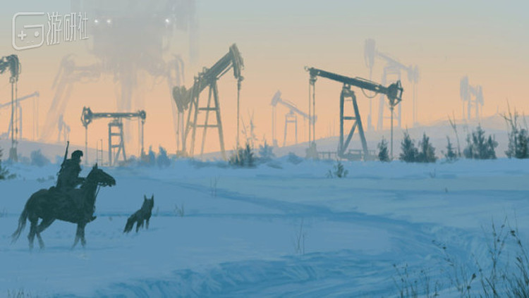 通过下面这些插画你可以发现,虽然交战各国的机械巨兽正在远方进行着激烈的交火,淳朴的波兰农民和牧羊人却在田间旁若无人地干着自己的农活,与他们朝夕相伴的野生动物们也像没事似的照常在原野上栖息生活,这种感觉既怪异又陌生,仿佛就发生在你身边却又触不可及,同时还带有一丝特有的恐怖感。