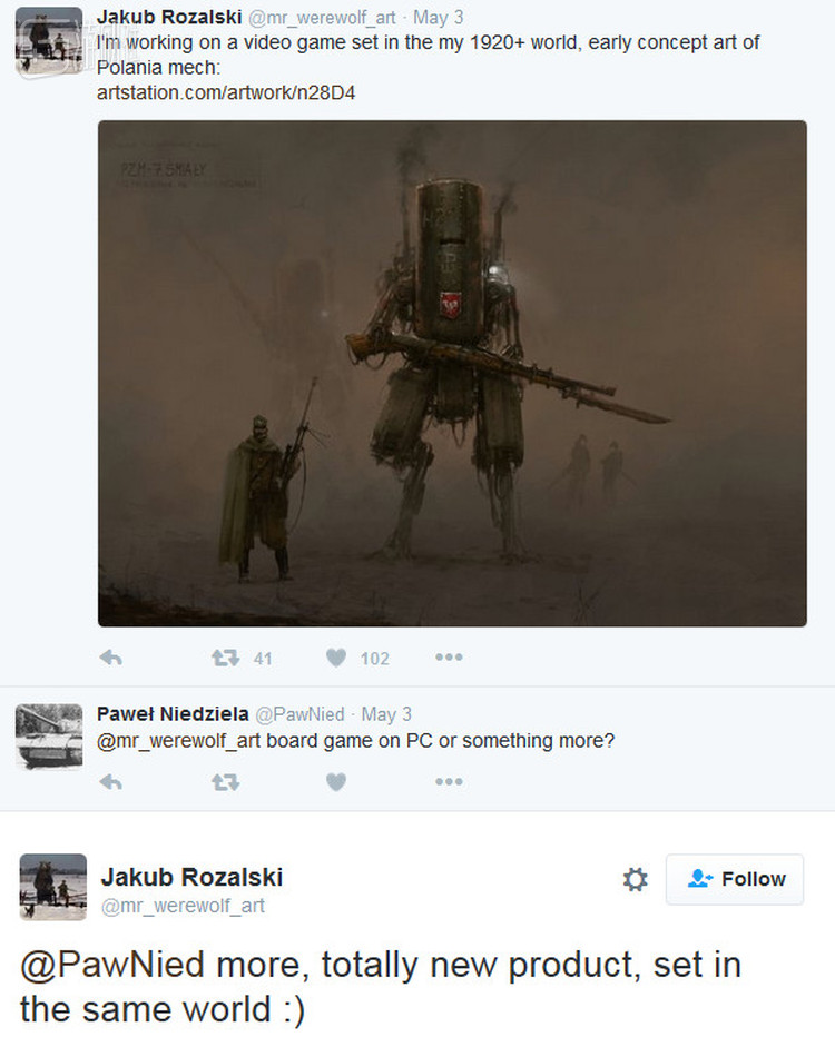 其实,想一想也知道,EA这样的大厂怎么可能会和一名名不见经传的插画师合作?不过,Rozalski却很可能是想选择这样一个时机来炒作自己的作品,无论他的动机是否单纯,显然他的目的是达到了。有关这位波兰作家的身平经历和《1920+》的一切背景知识都开始慢慢浮出水面……