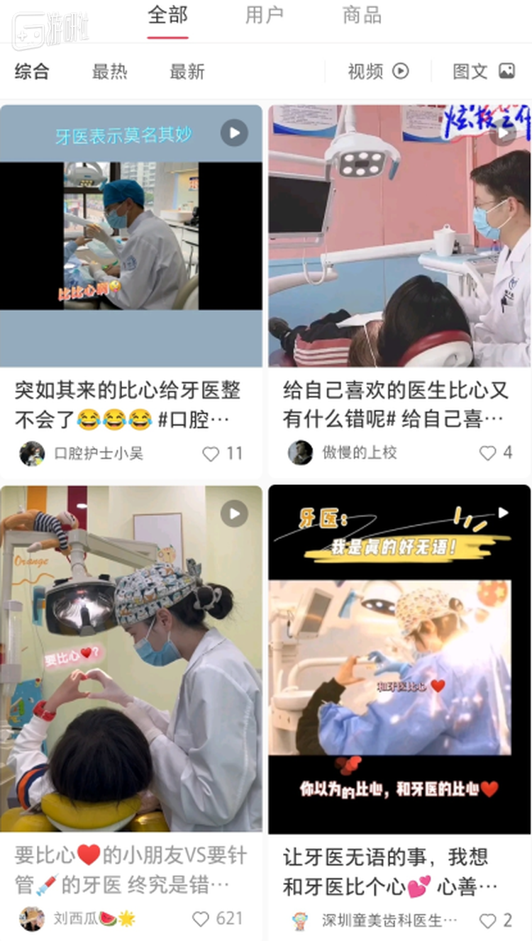 不过,随着“患者试图与牙医比心”的视频走红网络,国内外都有不少诊所摆拍了类似的视频,以此来展示自家诊所亲切温馨的一面。
