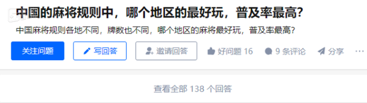 在知乎上有人提出这样一个极具争议性的问题:中国的麻将规则中,那个地区的最好玩,普及率最高?