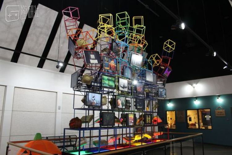在国家游戏博物馆的前大厅,迎接广大玩家访客的是一面由各式各样的游戏主机组成的艺术墙。每台主机还专门配有一个显示屏,循环播放着早期的宣传视频。可以说,从一进门开始,就让人感受到了扑面而来的游戏历史气息: