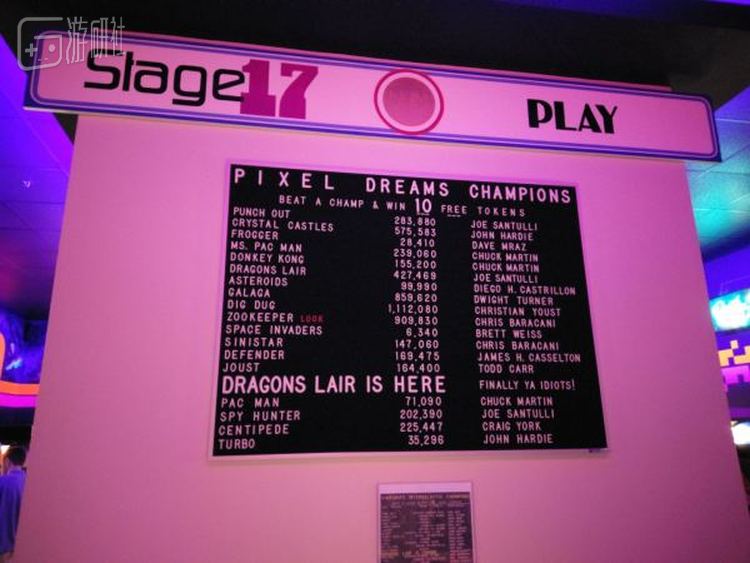 而在街机区的提示墙则写着:如果你打破这些游戏所保持的得分记录,就能免费获得10个代币。